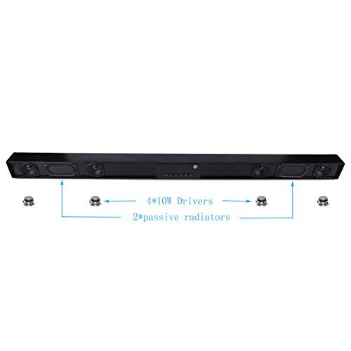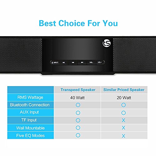 -. Title : Soundbar TRANSPEED Surround sound bar 40W(RMS) 6 Drive Speakers HiFi Wireless Bluetooth Soundbars, 5EQ Mode 2.0 Channel Soundbars Home Theater Party Speakers for TV /echo/phones/tablet/USB(new model)
