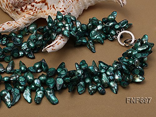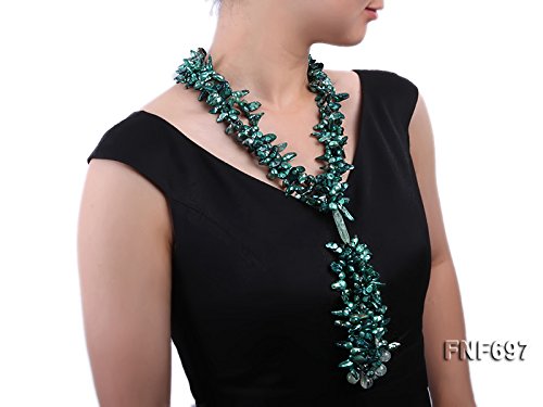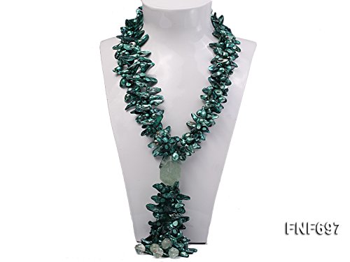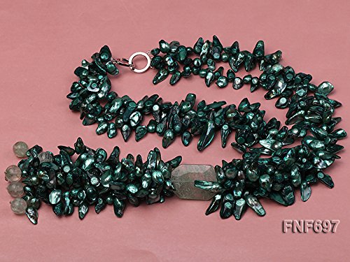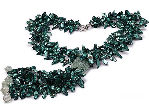 Description *This is a pretty three-strand necklace, set with 10x19mm glaucous tooth-shaped freshwater pearls, 12mm watermelon crystals and a big beautiful 21x28mm watermelon crystal in the middle.