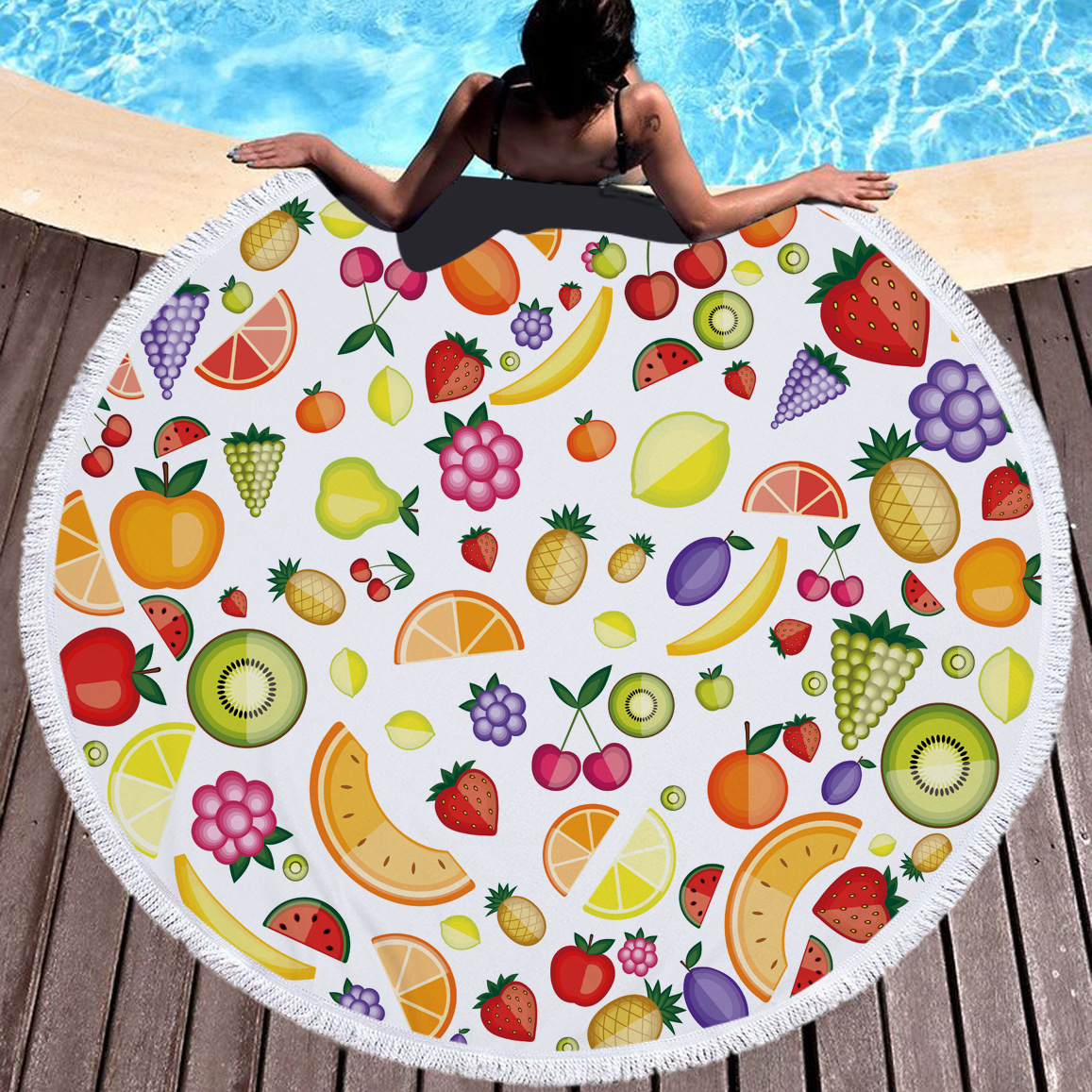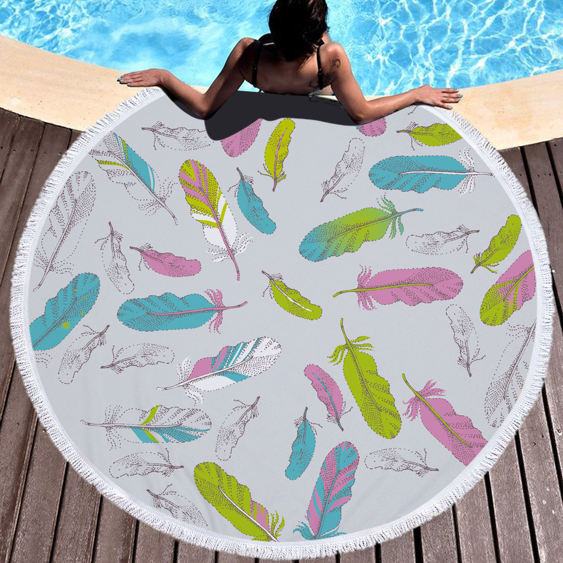 お花見やプール ビーチなどのアウトドアだけでなくインテリアにもぴったりで、実は子どもがいるママにもおすすめなラウンドタオル。