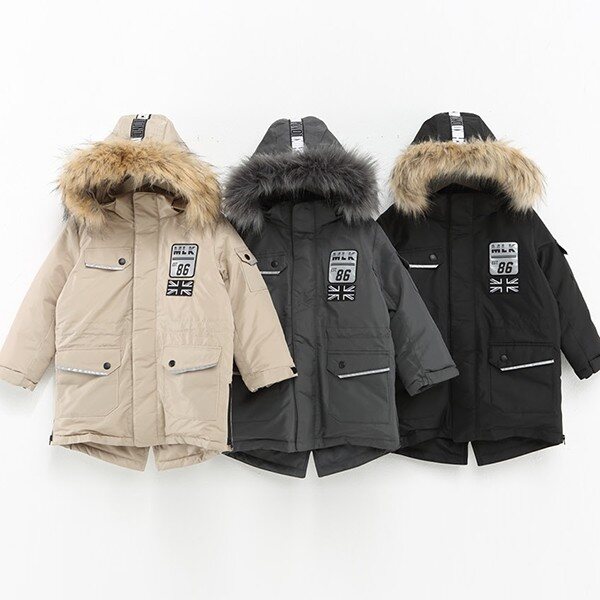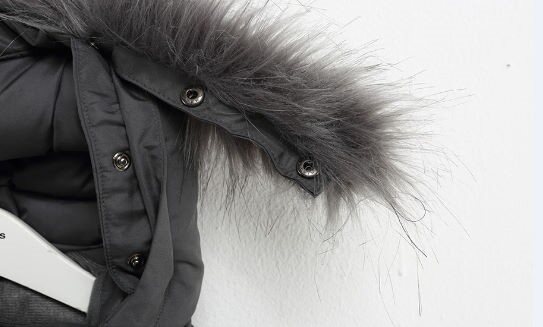 하프기장 오리털 점퍼 후드와 페이크 트리밍 모두 탈부착이가능함. 안쪽 스트링 밴드로 허리조절이가능하며 소매끝 시보리를 달아주어 따뜻하게 착용가능. 앞 반사원단 아플리케가 포인트.