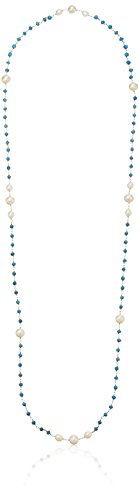 The earthy beauty of turquoise comes together with the sophisticated polish of white pearls in this endless necklace, whose 36 inches in length can be worn in a long, single strand or looped and layered.