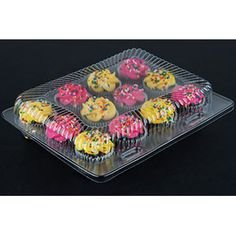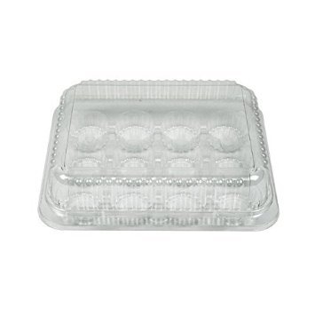 12 Compartment Cupcake Containers plastic cupcake containers disposable, but can be reused several times Measures 3.5 Inches in height , 13 inches in length, 10.5 In width
