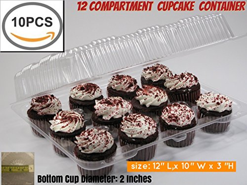 12 plastic containers - holds 12 cupcakes or muffins each 12 pack Dozen Cupcake Containers 12 compartment cupcake boxes Made in the USA and BPA Free! ✔CONVENIENT, bake your favorite dish and you can easily freeze or carry it along to share with friends and Family -Perfect packaging for a classic French delicacy, SAVE MONEY: with our bulk quantity and low prices you can Use these without a blink, these Cupcakes Containers are sized to fit your cooking needs at home or on the Go Great for all kind