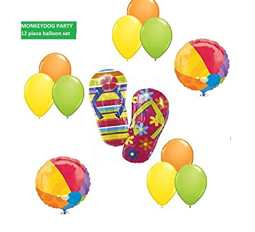 -. Title : 12pc BALLOON set new FLIP FLOPS beach BALL summer fun PARTY birthday LUAU any occasion
