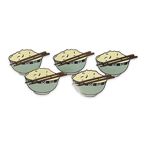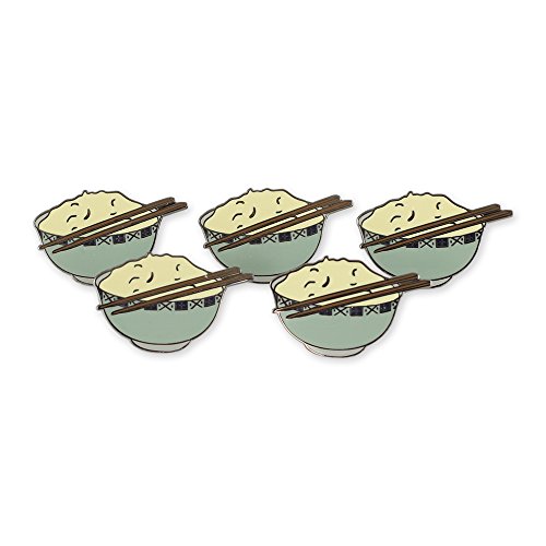 Rice Bowl With Chopsticks Hard Enamel Nickel Plated Diestruck Lapel Pin- 5 Pins