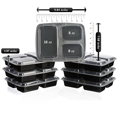 ✅ A BETTER PREMIUM MEAL PREP BOX SOLUTION - Make meal prepping easier and more fun by using our best multi, 3 compartment meal prep containers. This 10-Pack set of Bento boxes allows for healthy portion control that will help you achieve your fitness, weightloss, bodybuilding goals quicker. These are large enough to fit most lunch box bags and also small enough to save space or take on the go. Each food prep container can easily store a full course meal up to a total of 32 oz (18-8-8 ounces).