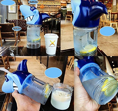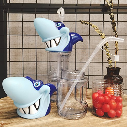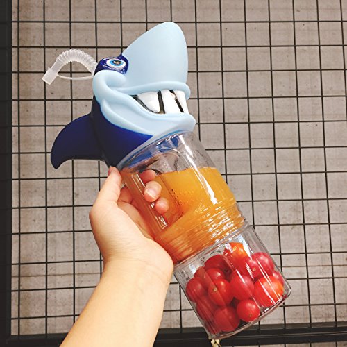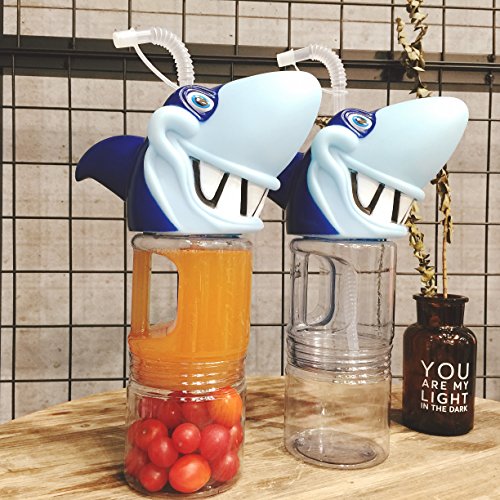 800ML Cartoon Shark Detachable Water Bottle With Straw For Kids Man Women
