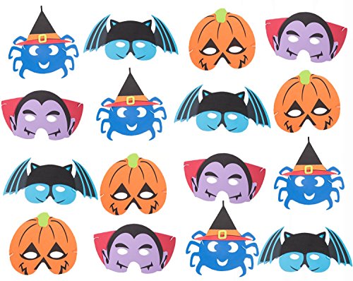 -. Binding : Kitchen -. Brand : jollylife -. Color : Colorful -. Feature : Package includes 16 masks with 4 design.(4 PCS per design) / Mask measures 6.6"- 11.5" and made of foam.The eye holes are good sized so the kids can see well. / Soft and flexible.Each mask with the elastic looped.One size fits most children. / A nice non-candy option for Halloween treat bags.Great party favor and photo backdrop for the kids. / Perfect for filling a "Halloween-themed" gift basket.Fun for the kids to wear. -. IsAdultProduct : 0 -. IsAutographed : 0 -. Label : jollylife -. Manufacturer : jollylife -. Model : J001A00HM828 -. MPN : J001A00HM828 -. PackageQuantity : 1 -. PartNumber : J001A00HM828 -. ProductGroup : Toy -. ProductTypeName : TOYS_AND_GAMES -. Publisher : jollylife -. Size : Halloween style -. Studio : jollylife -. Title : 16PACK Halloween Foam Kid's Masks - Pumpkin Spiders Bats Vampires Goody Treats Bags Fillers Party Favors