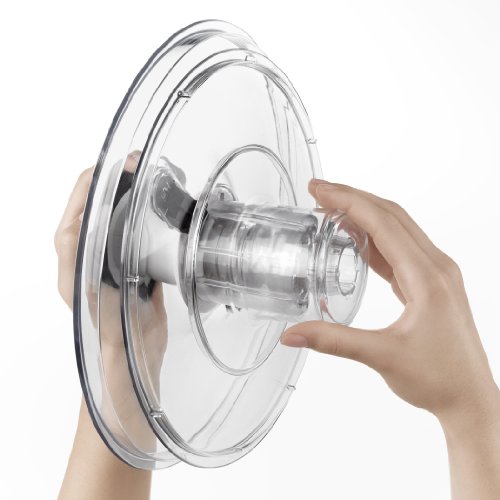 - Feature : Easy, one-handed operation with patented pump mechanism and brake button / Soft, non-slip knob locks down for storage and flat lid allows for convenient stacking when not in use / Non-slip ring and wide base keep bowl steady on countertop / Basket can be used separately as a colander and elegant, clear bowl is perfect for serving / Top-rack dishwasher safe and BPA free