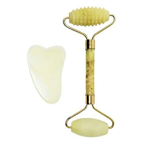 🌿 NATURAL FACE LIFT: The smooth jade roller end aids in the absorption of your favorite oil or serum. The textured jade roller end helps keep your skin supple, reduces wrinkles, and can be used as an intensive massage treatment all over the body, including neck, arms, thighs and buttocks. The gua sha stone detoxifies and tones facial muscles. Daily use stimulates collagen, minimizes puffiness, soothes redness, promotes circulation and helps drain sinuses.