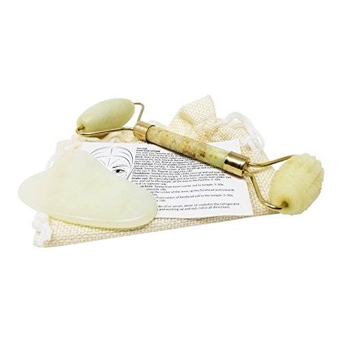 🌿 100% REAL JADE: Our premium jade roller and gua sha stone set is made of authentic, premium jade stone. Jade is said to have a tremendous amount of good energy that will have a positive effect on your skin. Our jade stone face massager tools should be used with your favorite oil or serum, to rejuvenate, refresh, slim and tone your face, neck and body. Using our jade roller and gua sha stone set as part of your daily routine for a smoother more radiant complexion.