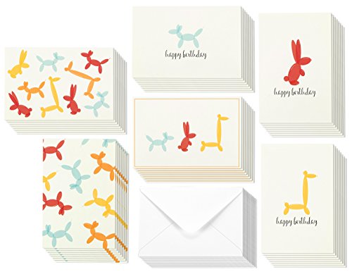 48 Pack Children Birthday Cards Colorful Balloon Animals Puppy Bunny and Giraffe Happy Birthday Greeting Cards Assortment for Kids Variety Pack - Bulk Box Set with Envelopes Included - 4 x 6 Inches