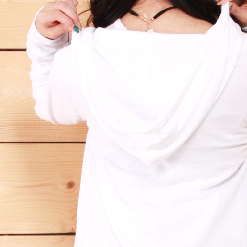 【Lサイズ】 着丈:約63cm 肩幅:約39cm 袖丈:約60cm 身幅:約46cm ※すべて平置きサイズです。 | | 素材 | ポリエステル65%・綿35% | | 生産国 | 中国 | | 裏地 | なし | | 生地の伸縮 | あり | | 生地の透け感 | 若干あり | | カラー | 01. 白 | | 注意点 | ▼綿混合商品は洗濯時に多少縮む事がございます。 ▼パソコン、モニター等の環境により、実際の商品素材カラーが多少異なる場合が御座います。予めご了承ください。 ▼お手数ですが必ずお買い物ガイドを一読頂いてからご利用いただきますようお願い申し上げます。 | |