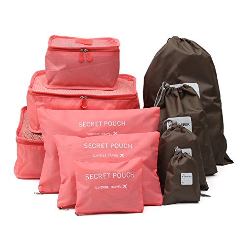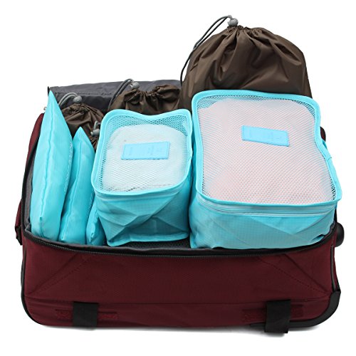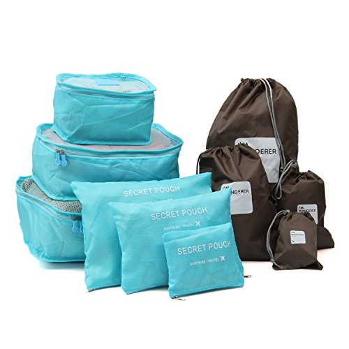 KINGSO 10 Set Waterproof Travel Luggage Packing Organizers, 3 Packing Cubes 3 Storage Pouches...