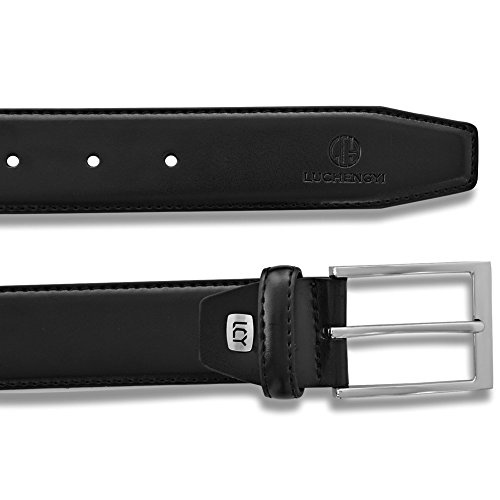 -. Binding : Apparel -. Brand : LUCHENGYI -. Color : Black -. Department : mens -. Feature : Belts for men is made of sleek black leather / The outside is smooth and the inside has a cross-hatch design. / The silver alloy belt buckle makes it new all the time / Gift box Packaging upgrade, random shipment. / Belt measuring head of the buckle to the middle hole(not including buckle). Pls Order larger than your pants or waist size. -. Model : 350464 -. PackageQuantity : 1 -. ProductGroup : Apparel -. ProductTypeName : ACCESSORY -. Title : Belts for Men Leather Black Business Belt with Gift Box