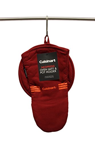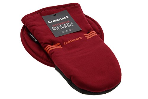 Cuisinart Puppet Oven Mitt & Round Potholder Set w/Neoprene for Easy Gripping, Heat Resistant up to 500 degrees F, Red Dahlia