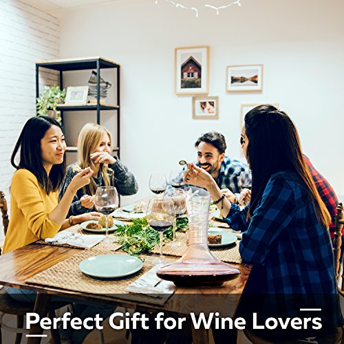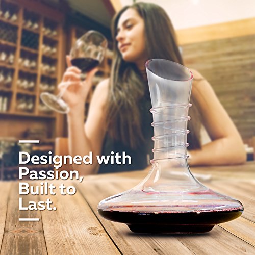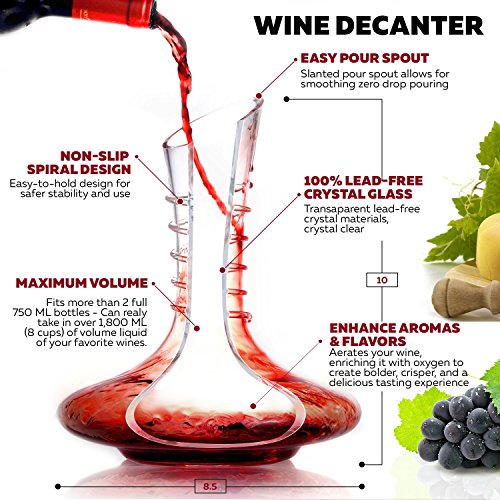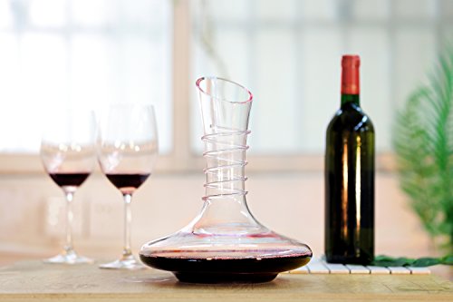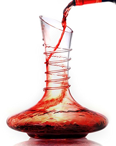 Experience bolder, crisper, more rich wine flavors with a premium wine glass decanter from Resstoni. Oxygenation is essential to capturing the purest taste of any red, white, or port wine. And that begins the moment you pour it from the bottle. That's why we created the Resstoni Glass Wine Decanter that helps wine "breathe", infusing it with essential oxygen to improve complexity and fullness with every wine glass you enjoy. Hand-Blown Craftsmanship These non-slip spiral carafes are crafted with durable, lead-free crystal and feature a spill-proof, long-neck design with slanted spout. This makes them both stylish and easy to use in and out of the kitchen. Wonderful Holiday Gift This premium wine accessory is the perfect choice for enthusiasts, connoisseurs, friends, and family. Not only because it's beautiful, but because it's got a stronger, thicker base design and holds up to two full wine bottles. Product Details: - Crystal Wine Decanter