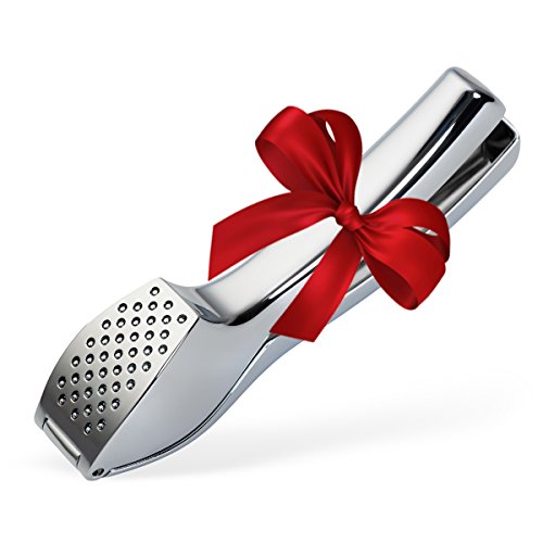 -. Feature : AMAZINGLY EFFICIENT - Drop in a peeled OR unpeeled clove, give a squeeze and be amazed at how much garlic comes out. Welcome to the Rolls Royce of chef approved garlic presses. No waste here / EASY TO SQUEEZE - ergonomically curved to sit comfortably in your hand, mincing garlic is quick, painless and fuss-free, even if you have a smaller hand or weaker grip. And because you don't have to peel your cloves first, you won't end up with smelly garlic fingers. / EASY TO CLEAN - clean-up is absolutely a breeze. This is a one-piece construction without a lot of useless pieces and parts that flip all over, so there are no hidden spaces for garlic to get stuck in. Just a quick rinse and you're done. It`s that simple. Seriously! Or pop it in the dishwasher if you'd like. You DON`T NEED A BRUSH to be patiently picking pieces out. / COMPACT & STYLISH - this garlic press is a Must Have for your kitchen, workplace or on a camping trip. It's the ideal gift for anyone. Don't hold back on those enticing garlic flavours. Treat yourself like a pampered chef! / BUY CONFIDENTLY. 100% SATISFACTION GUARANTEED - We are so super confident in our garlic press that if you have any problems whatsoever for the LIFETIME of the product, let us know and we will refund you your full purchase P.R.Ice, plus ship you another brand new kitchen gadget FREE of charge, no hassles. Once you start using the KitchenPalz garlic press, you are sure to question how you ever survived without it! Buy one for you and one for a friend now!