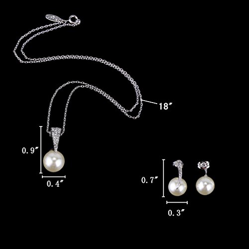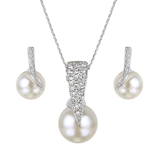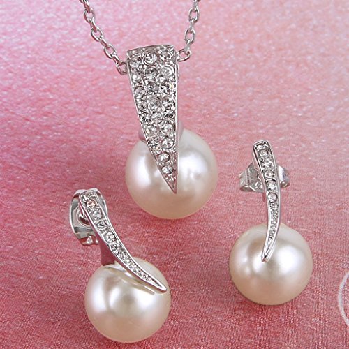 Crystal Color: Clear; Simulated Pearl Color: Ivory Color; Necklace Length: 17.7in-20.1in, Pendant Size: 0.4in by 0.9in, Earring Size: 0.3in by 0.7in; Total Weight: 7g