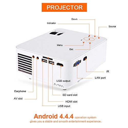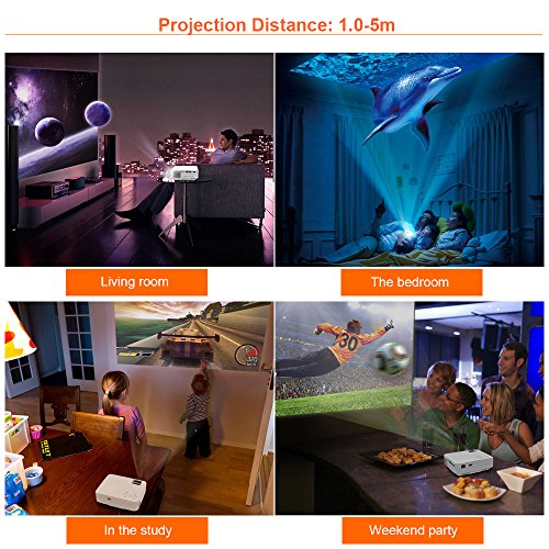 This T20 mini projector adopted the lasted upgraded LED technology, provides more brightness than ordinary LED projector with 1500 Lumens. In dark room you will enjoy sharp image.