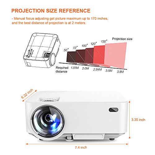2. Large Screen Experience-Relax your eyes from TV Support projection size from 32 to 176 inches, the best projection distance is 2m with projection size about 80 inches.