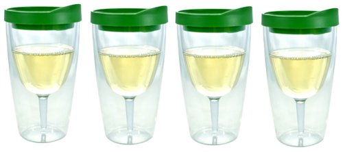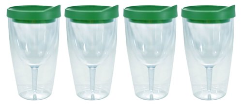 -. Title : Southern Homewares 4-Pack Wine 2Go! Insulated Vino Double Wall Acrylic Wine Tumbler with Verde Green Drink Through Lid, 16-Ounce