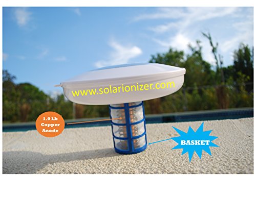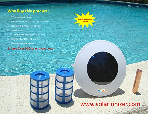 Solar swimming pool Ionizer with LED (Lights up if unit works) - 2 Baskets & 1 copper-silver anode - Effective up to 35,000 gallons - NO TAX