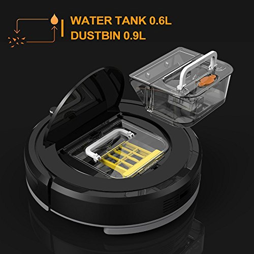 The Hovo 780 robot vacuum cleans hardwood, carpet, linoleum and tile floors with turbo mode suction vacuum and roller brush sweeping, a HEPA filter and a built-in ultraviolet light to kill dust mites and other allergens on the floor and inside dust bin. It can wet mopping hardwood floor with electronics control water dripping. You can fill up water tank with tap water or Bona® cleaning solution. When the rechargeable battery is low, it returns automatically to its charging base. Features LED display panel, voice prompts for easy programming. Includes remote control and a two-way virtual blocker that sets up an invisible barrier.