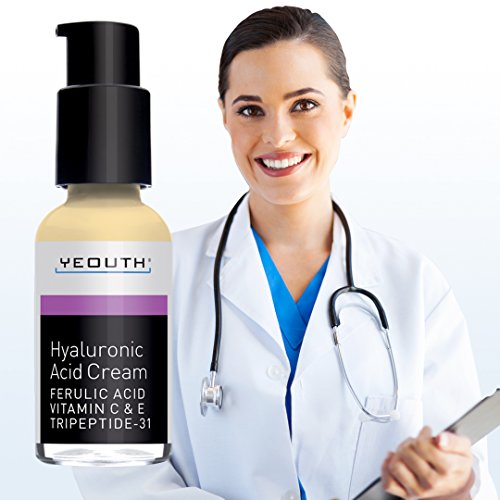 FORMULATED PROFESSIONALLY WITH MEDICAL GRADE INGREDIENTS | YEOUTH Hyaluronic Acid Cream boosted with Ferulic Acid, Vitamin C, Vitamin E, Shea Butter and Tripeptide 31. YEOUTH face cream will deeply hydrate skin and help address anti-aging concerns. Bottle will last for 1 month continued use. Unit size 1 fl oz. YOU WILL LOVE HOW THIS FACE MOISTURIZER MAKES YOUR SKIN LOOK OR YOUR MONEY BACK!