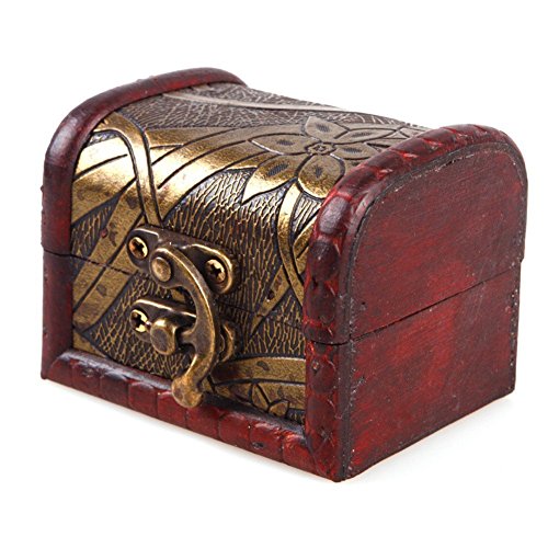Small Vintage Jewelry Treasure Lock Storage Handmade Wooden Jewelry Case Box Random Color