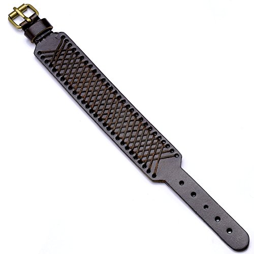 -. Title : Zysta Mens 30MM Wide Genuine Leather Handmade h.e.m.p Grid Mesh Braided Wristband Buckle Belt Bracelet Bangle Cuff 7.5-9.5"