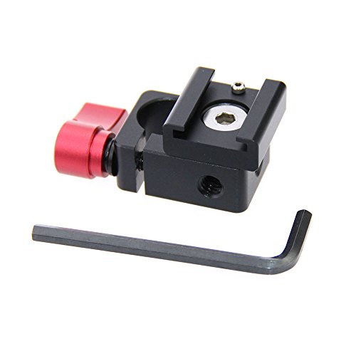 The Cold Shoe Rod Clamp Adapter provides a cold hot shoe slot, allow you connect the device with hot shoe base, such as video light. Standard 15mm rod hole is compatible with 15mm rod and lever. The Cold Shoe Rod Clamp Adapter comes with extra four 1/4" thread holes which is respectively at the bottom, the front, left and right, you can use them according to your need.