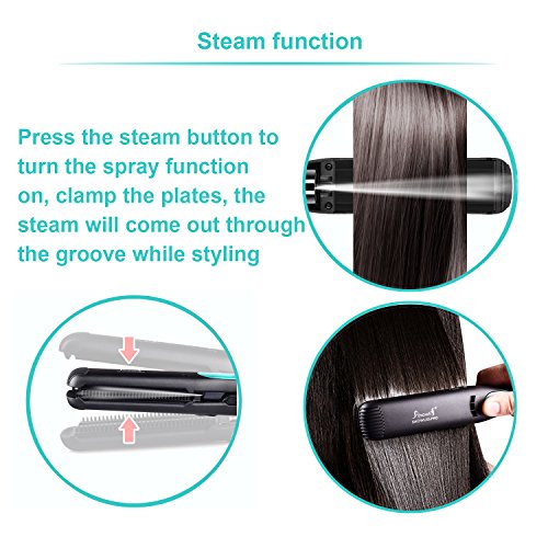 Flat Iron, Steam Hair Straightener, Hair Flat Iron Straightener with STEAM Technology & 5D heating Teeth