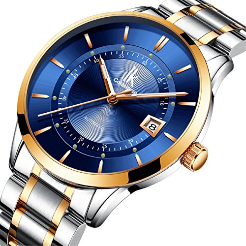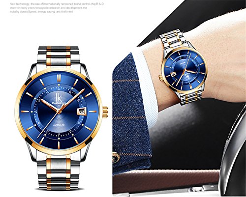-. Title : BesTn出品 腕時計 メンズ 機械式 3ATM生活防水 日付表示 夜光 ステンレスバンド ゴールドブルー