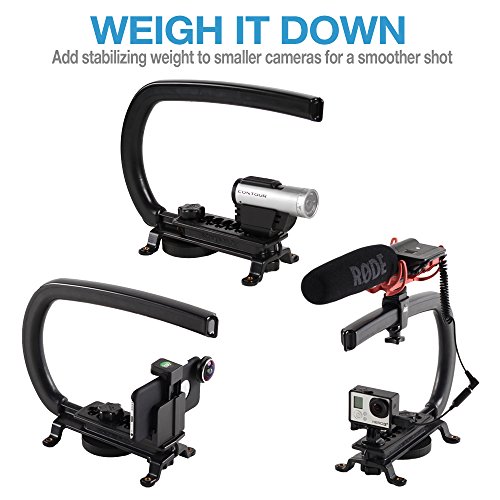 The weight can also be used in conjunction with our Accessory Shoe and 1/4-20 Flasher. By displacing the weight of the camera further back it creates a very balanced and stable platform that is incredibly easy to maneuver.