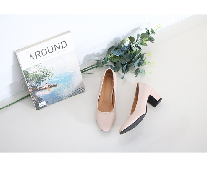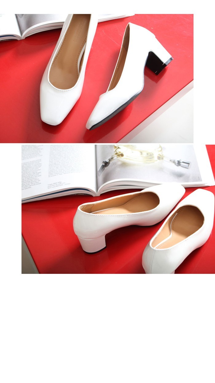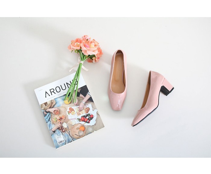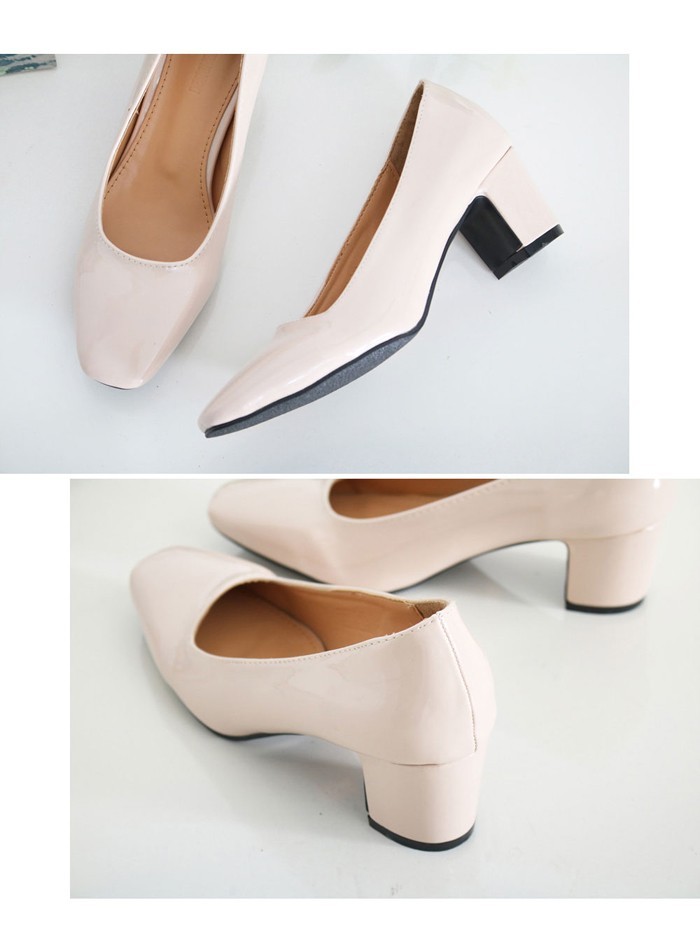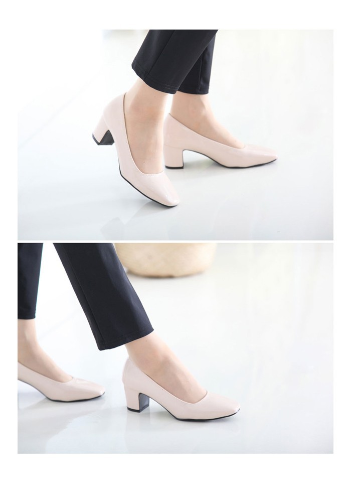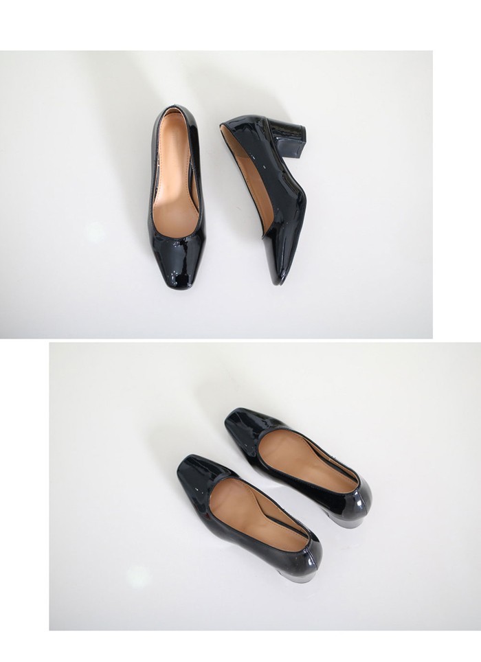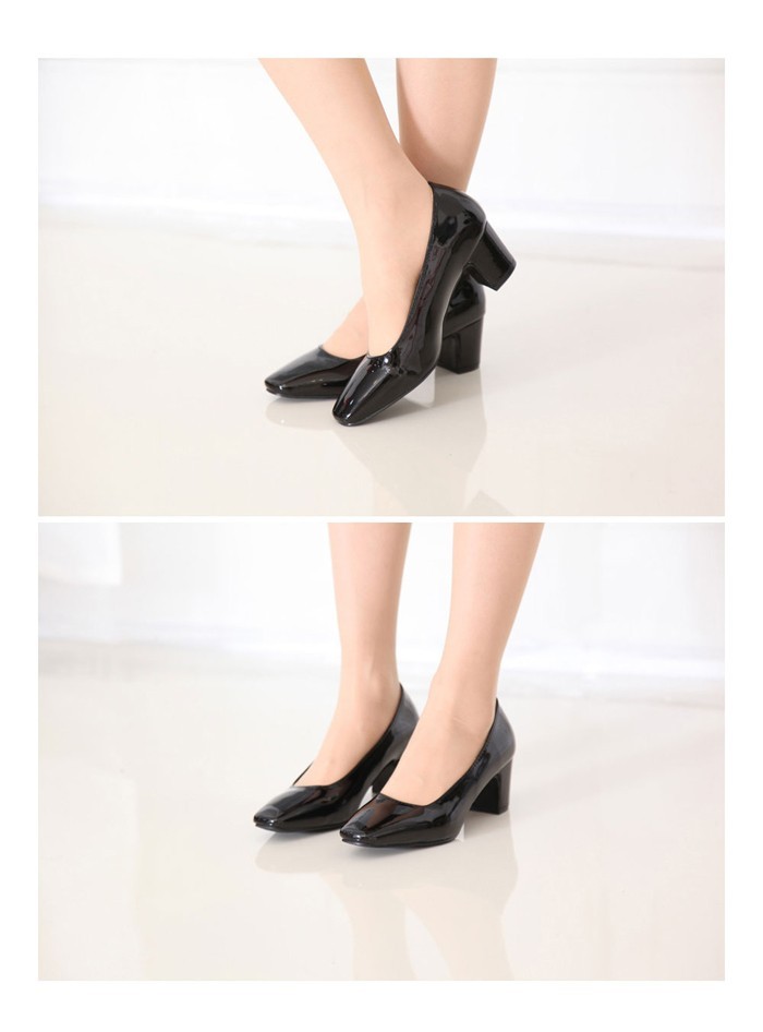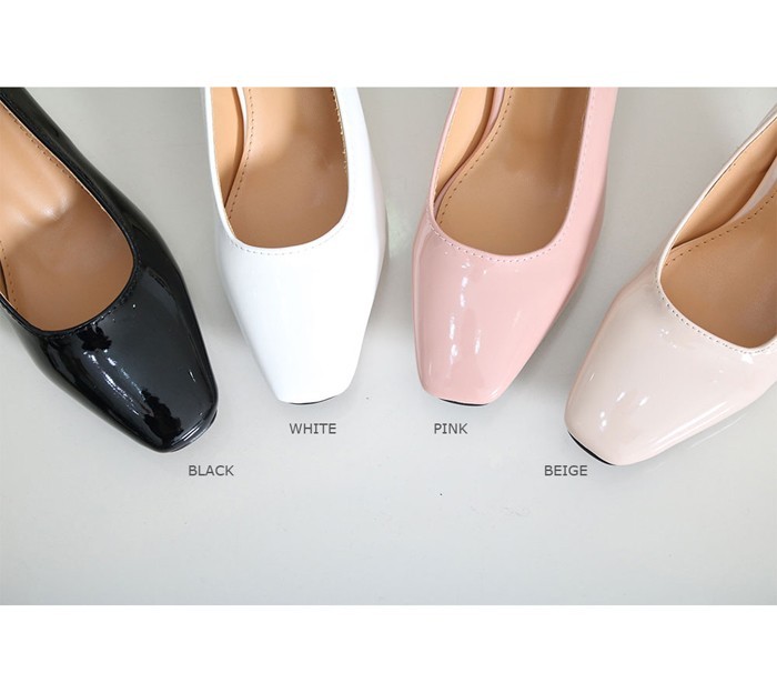商品名:パンプス レディース スクエアトゥ エナメル調 太ヒール チャンキーヒール 2017 秋 冬 ファッション 靴 婦人靴