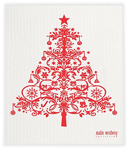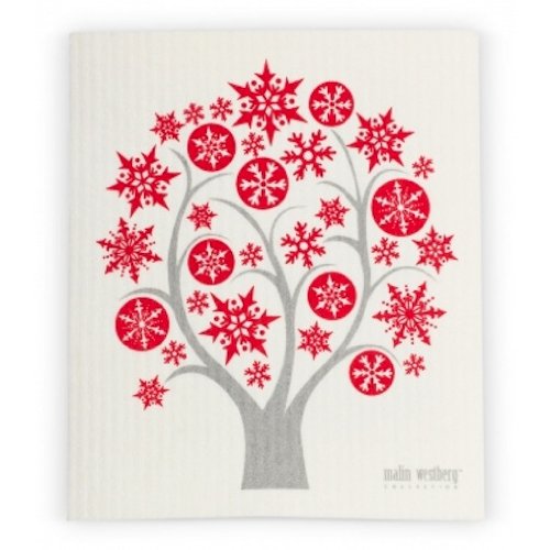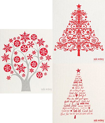Swedish Dishcloth - Set of 3 HOLIDAY Christmas Trees (NY) in Mostly RED
