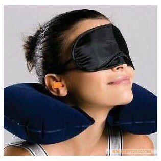 This product set inflatable pillow? dark eye? anti noise earplug in one for your home oroffice of a tourism? create a small environment quiet and comfortable. In this way? you cansleep in the car? the shade? tents? inflatable pillow can put your neck and head comfortablysupport? no reel right and left embarrassed. Inflatable pillow with advanced rubber liner?outside flocking? feel good.