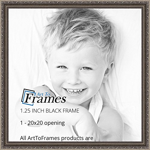 ArtToFrames 20x20 inch Antique Silver with Beads Wood Picture Frame, WOMD6661-20x20