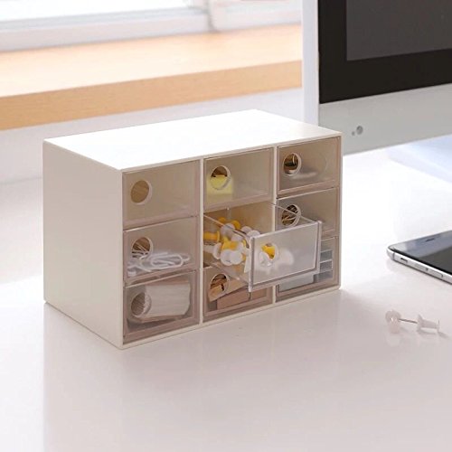 Chris.W Mini Jewelry Drawer Organizer /Art Crafts Storage Box /Hair Pins Clips Container /Office Supplies Storage Box - 9 Drawers 6.4x3.1x3.9 in(White)
