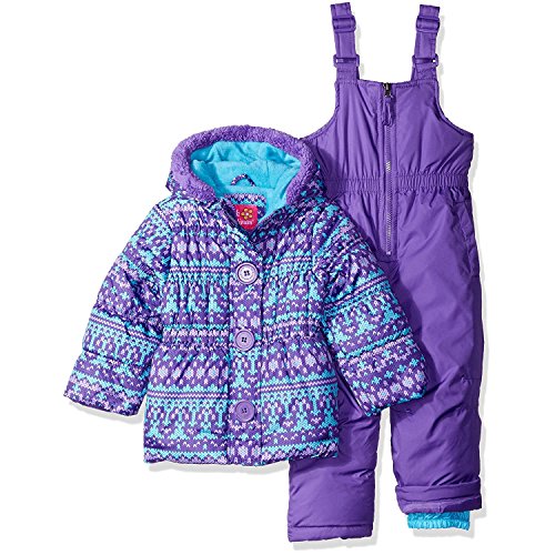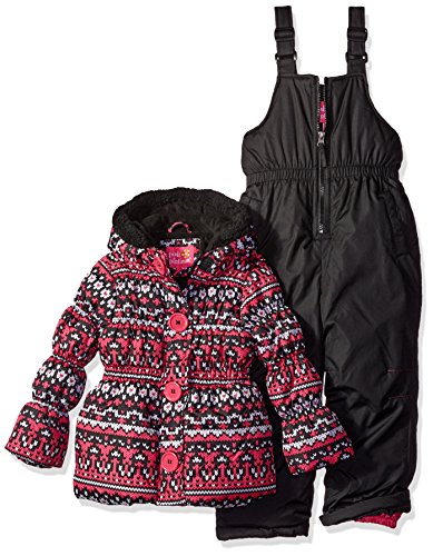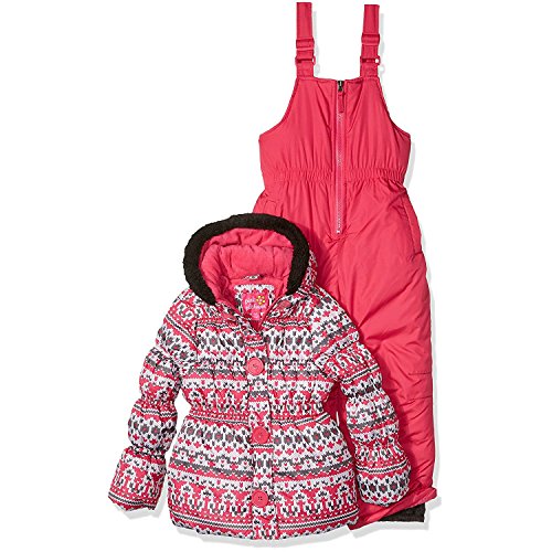 Pink Platinum girls fair isle print snowsuit with faux fur trim hood