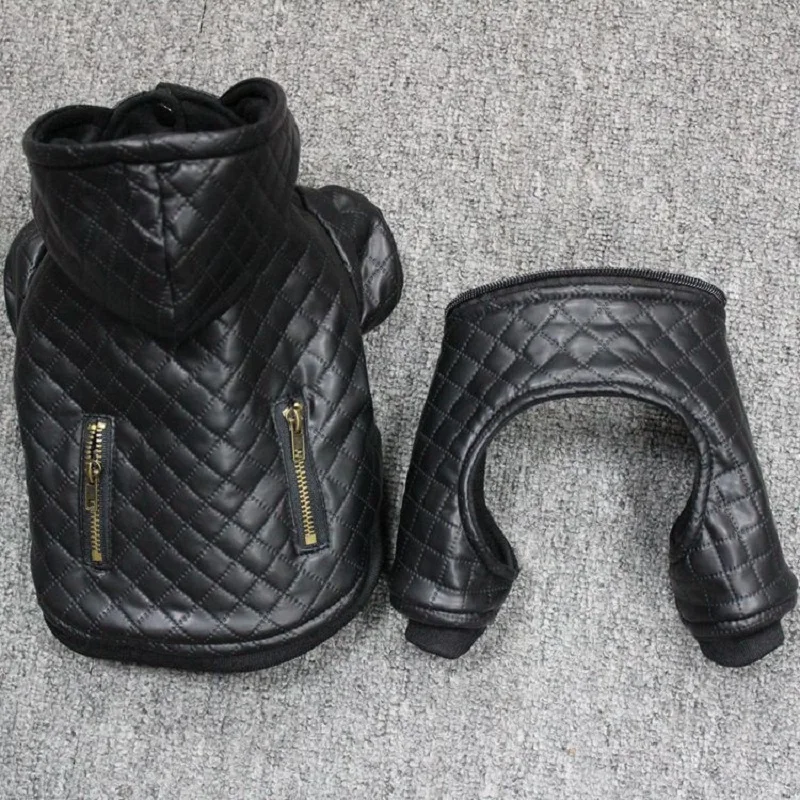Detachable two-piece dog clothes winter:high quality Leather dog clothes winter