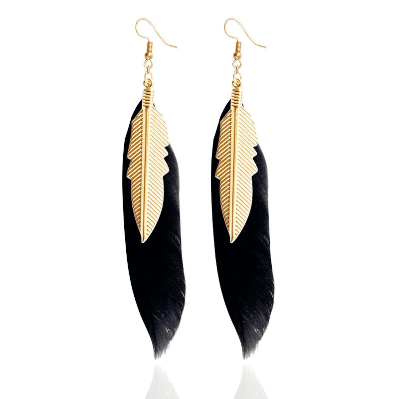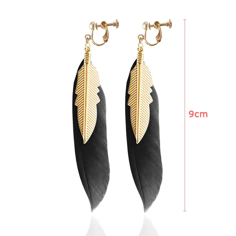 Product Name:Black Feather Stud Clip Ear Without Piercing Earings