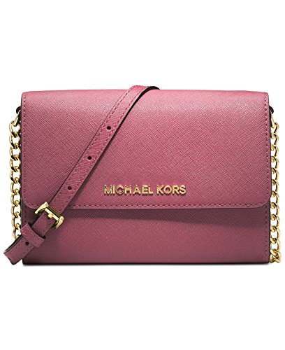 -. Brand : Michael Kors -. Color : Tulip -. Department : womens -. EAN : 0889154556461 -. Feature : Saffiano leather. Adjustable crossbody strap with 23" drop. Magnetic snap closure. / Logo lettering at front; gold-tone or silver-tone hardware; slit pocket in back / Interior features 1 cell phone pocket; 5 card slots; one zippered pocket / 7" W x 5" H x 1-1/2" D / Imported -. ProductGroup : Shoes -. ProductTypeName : HANDBAG -. Size : One Size -. Title : Michael Kors Leather Jet Set Travel Large Phone Crossbody Tulip - Fits Iphone 6S Plus -. UPC : 889154556461