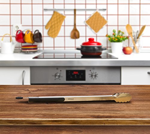 - LIGHTWEIGHT, YET DURABLE & LONG-LASTING: Unlike poorly-made tongs on the market, the ETS STEEL ergonomic tongs are firm and angled to offer amazing grip and control. Plus, they are extremely heat resistant, designed for durability and longevity.