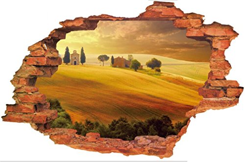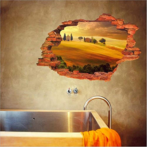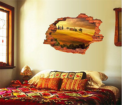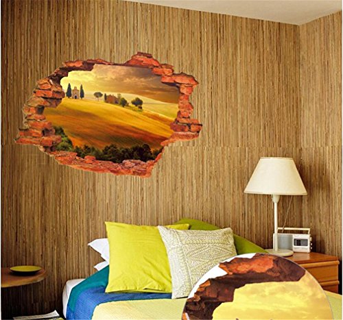 -. Title : 3D Fake Windows Wall Stickers Forest Bridge Lavender Desert Broken Wall Windows Landscape Pattern Decal Removable Vinyl Home Kids Nursery Room Decor Art Mural Wallpaper