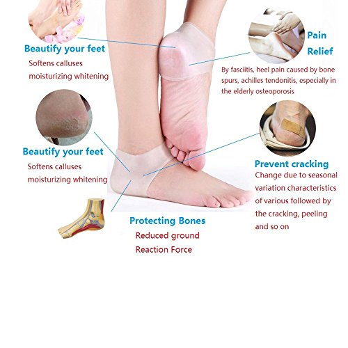 Dealglad® 1 Pair Silicone Moisturizing Gel Heel Protector Cracked Foot Care Cushion Pad Ankle Pain Relief Socks (Skin Color)