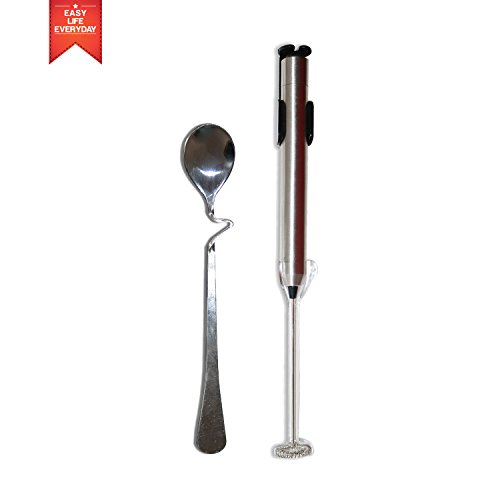 Zoom Handheld Milk Frother - Battery Operated Electric Stainless Steel Whisk - Best Foam Maker for Coffee Latte Milk Egg Tea Hot Chocolate And More With Stand And Bonous Mix Spoon