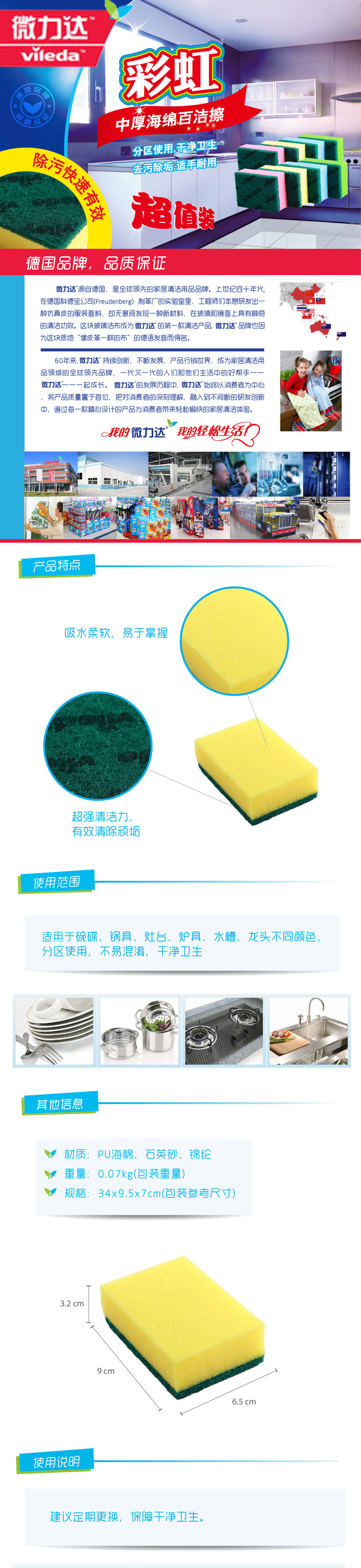 彩虹8片装 洗碗海绵抹布纳米海绵百洁布刷锅吸水不沾油