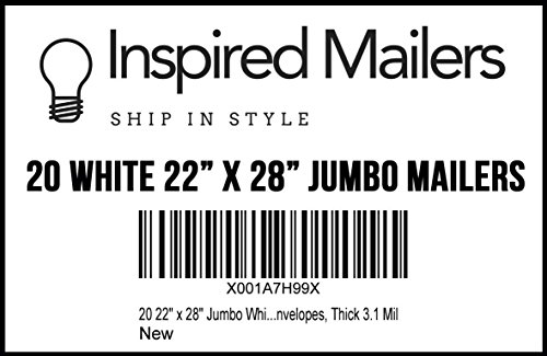 FITS EXTRA LARGE ITEMS: These 20 unpadded flat white jumbo shipping bags with a self adhesive strip are 22" x 28" (55.9cm x 71.1cm) with a 1.5" flap (3.8cm).